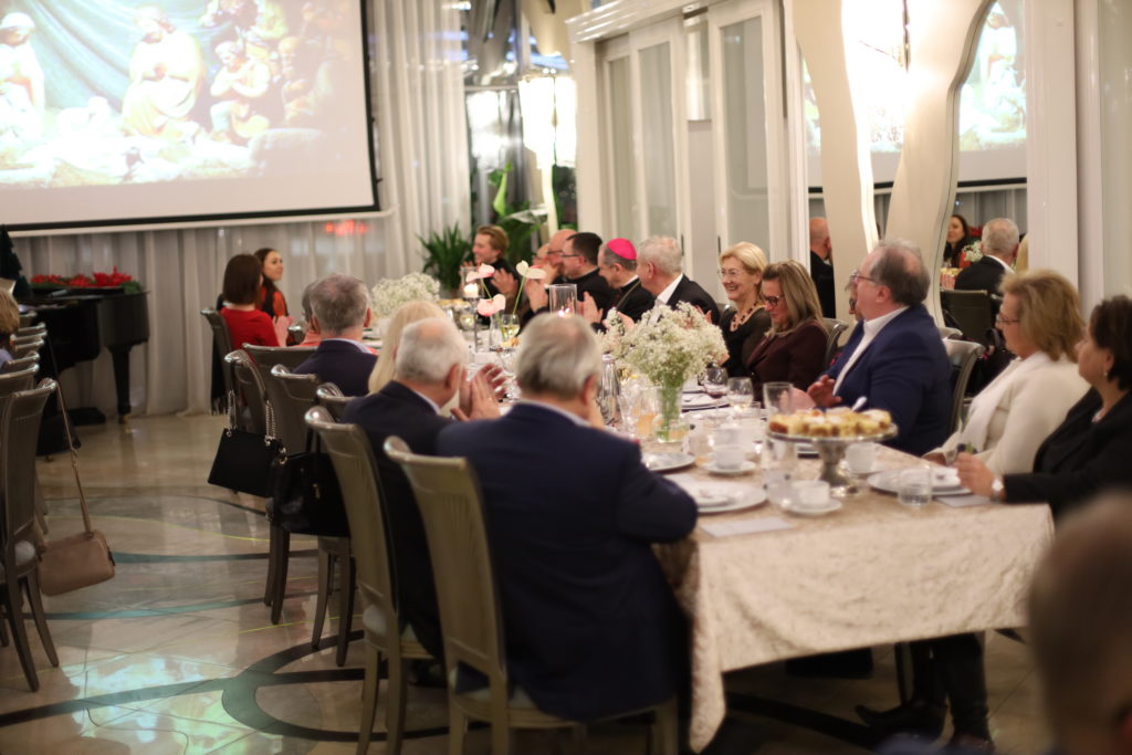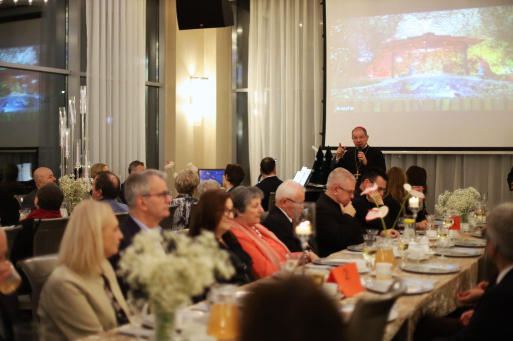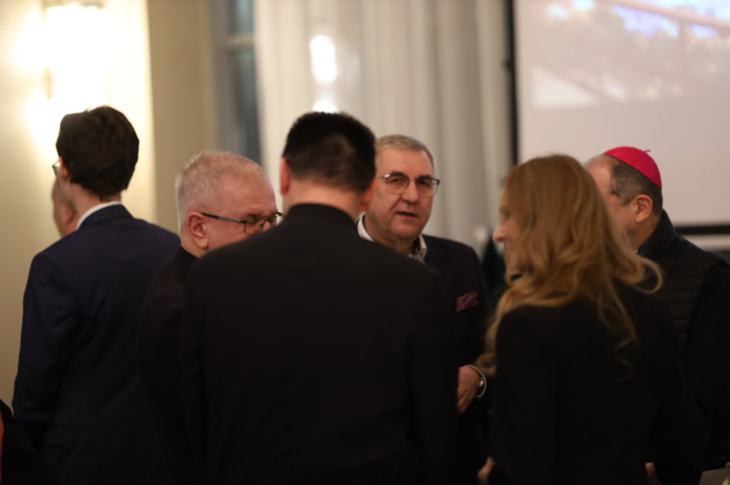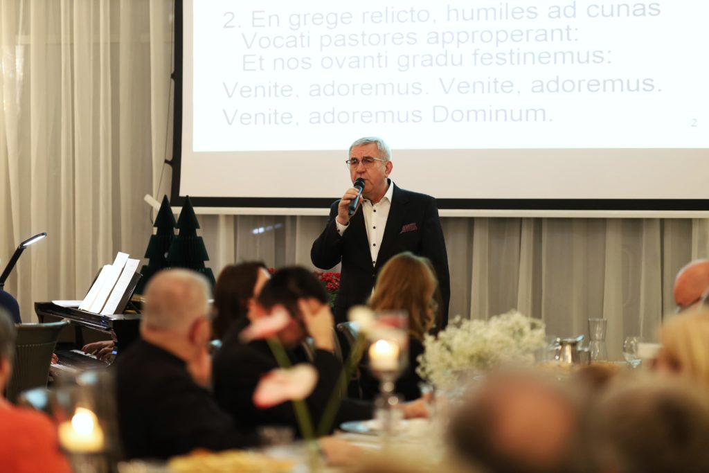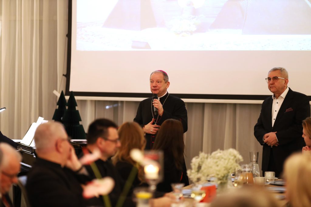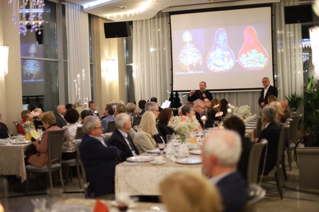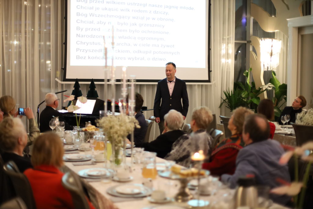 Wieczory kolędowe od lat integrują przedsiębiorców, akademików, przedstawicieli świata nauki oraz duchowieństwa. W tym roku mieliśmy zaszczyt gościć JE biskupa Grzegorza Olszowskiego, biskupa pomocniczego Archidiecezji Katowickiej oraz delegata Konferencji Episkopatu Polski ds. Duszpasterstwa Przedsiębiorców i Pracodawców. Biskup wygłosił słowo wstępne, a następnie wspólnie z uczestnikami włączył się w kolędowanie.